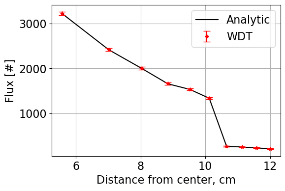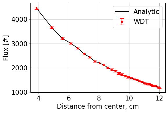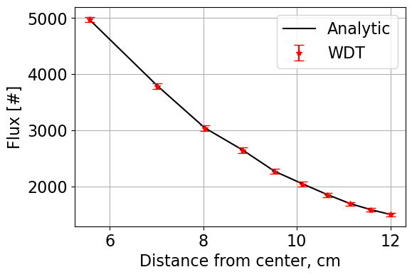 The weighted delta tracking algorithm and associated data processing is completed using pointsource_sphere.py which contains the class PointSourceInSphere. The functions contained within PointSourceInSphere include an analytic solver, a solver for surface tracking (ST), a solver for delta tracking (DT), a solver for weighted delta tracking (WDT), and associated post processing functions such as statistical analysis and plotting.