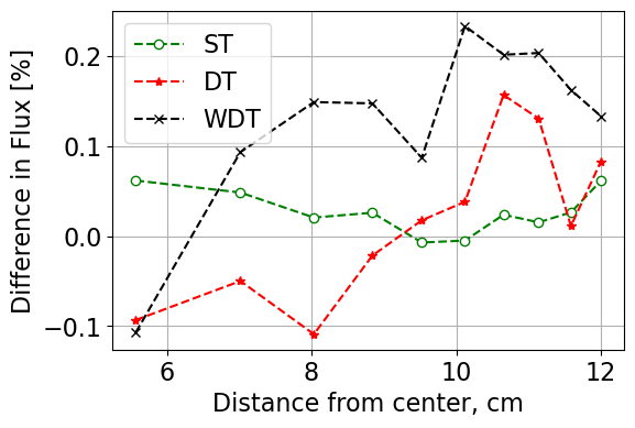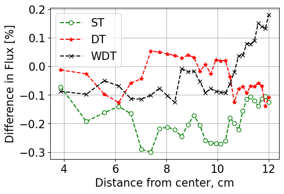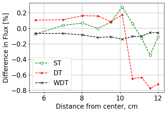 The tables below give relevant data in terms of leakage, runtimes, flux standard deviations, and figures of merit (FoM) for each case and each routine tested. The FoM is calculated as: