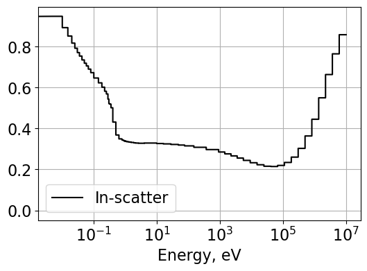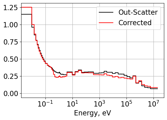 The out-scatter method tends to underpredict transport cross sections due to anisotropic scattering largely attributed to hydrogen. This is particularly pronounced at high energies. The out-scatter method undergoes hydrogen correction to improve tranport cross sections.